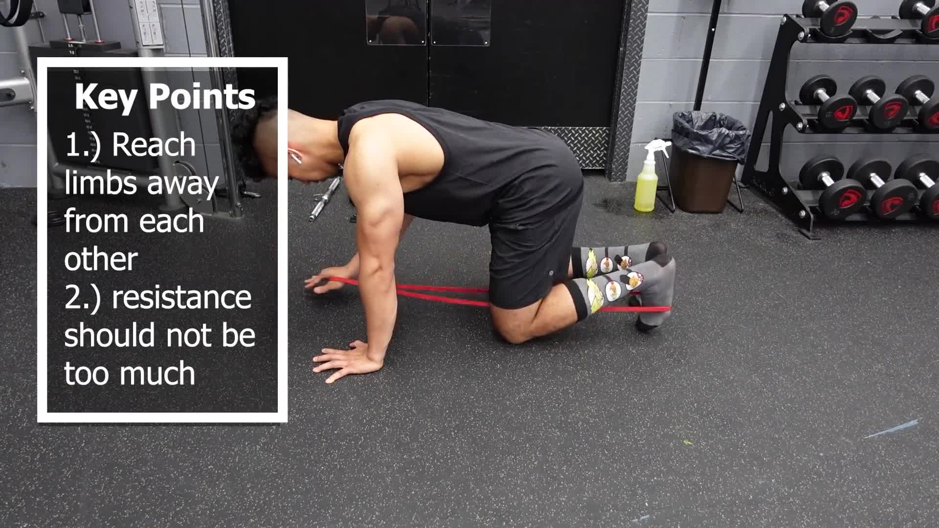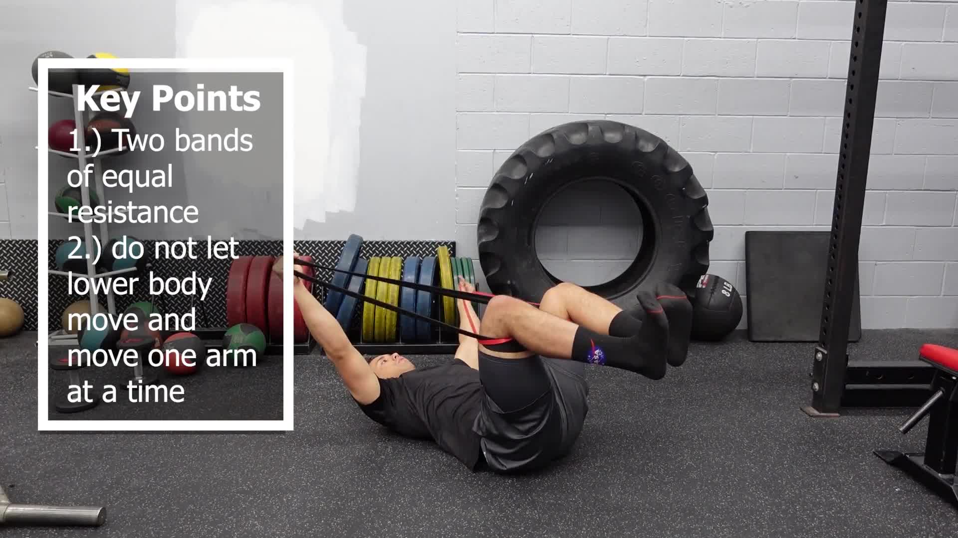 90-90 DNS is a Dynamic Neuromuscular Stabilization (Hence DNS) technique. The two bands being pulled in different directions is used to reinforce and challenge the core.