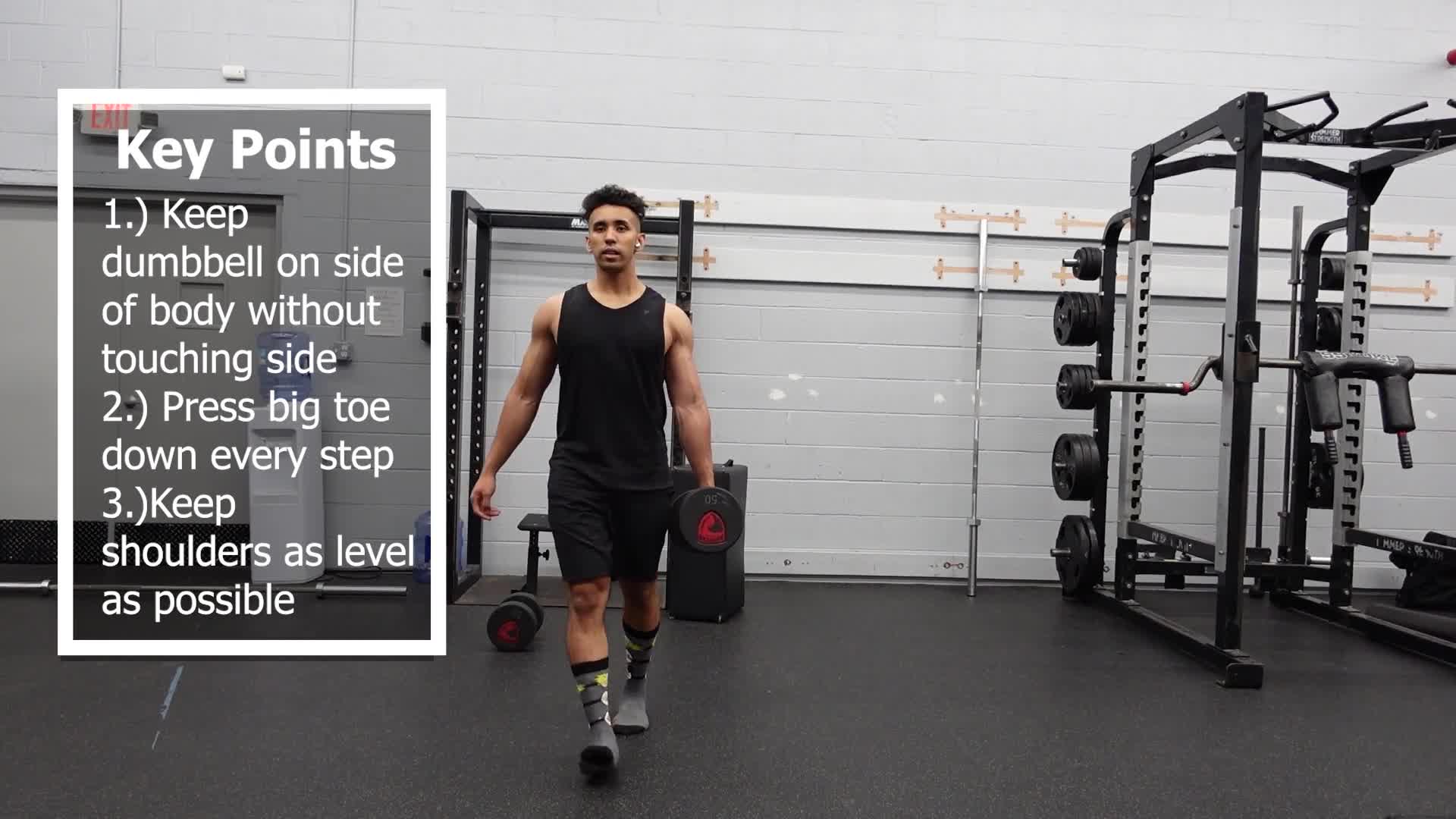 Farmers Carries are a great total body exercise. This variation involves 1 dumbbell with the hand on your side.