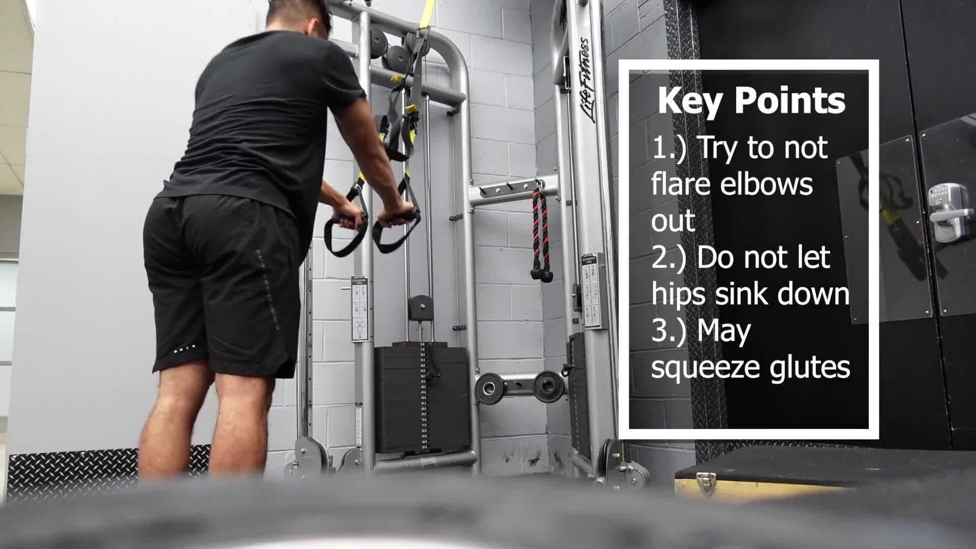 TRX supermans are a great anti-extension core exercise. The goal of this is to go as far out as your can without letting hips dip or spine dip.
