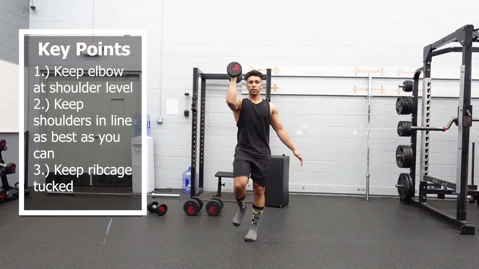 Farmers Carries are a great total body exercise. This variation involves 1 dumbbell with the elbow at shoulder level.